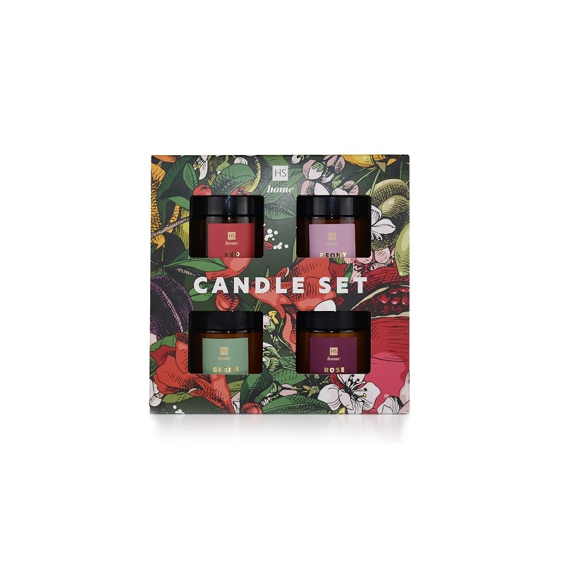 Σετ κεριών με 4 τεμάχια, με αρώματα: Red Fruit, Papaya, Green Tea, Rose Vanila.
